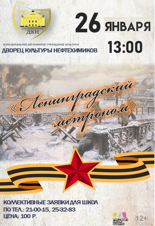 В память о трагических событиях Дня освобождения Ленинграда во Дворце культуры нефтехимиков состоится театрализованная тематическая программа для школьников «Ленинградский метроном».